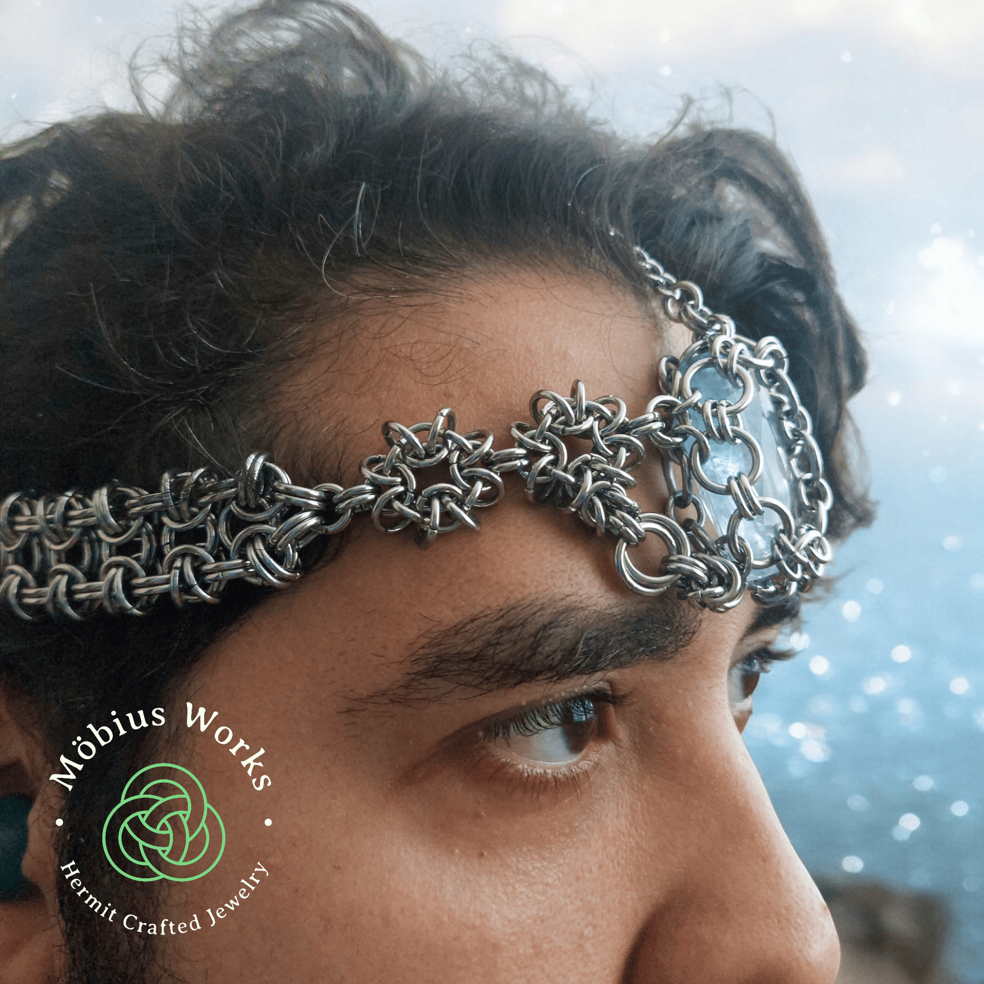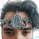 Head Dress made with a combination of a beez 2 butterfly weave and vipera star weave with a compressed crystal as a center piece