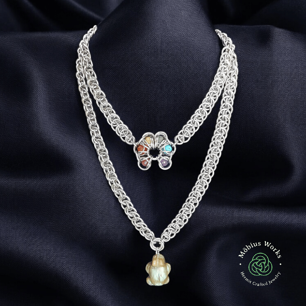 Can you believe they're turning the freaking frogs gay??? You can be next! With this stainless steel necklace and labradorite frog fella (they're just a lil guy!)