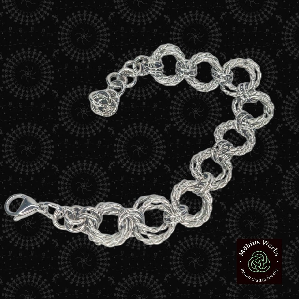 Pretty self explanatory. Möbius knots bracelet with twisted jump rings. 100% stainless steel