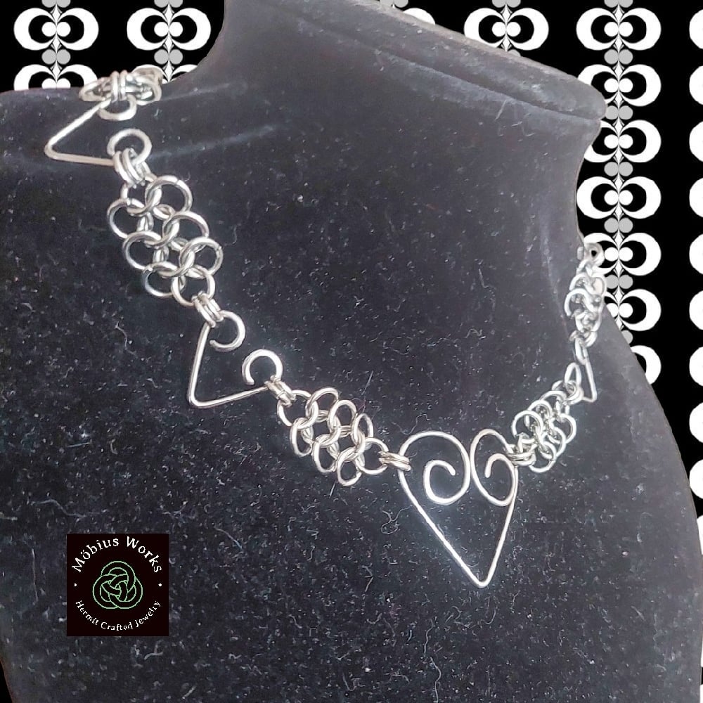 European 4 in 1 weave connected to some handmade hearts. 100% stainless